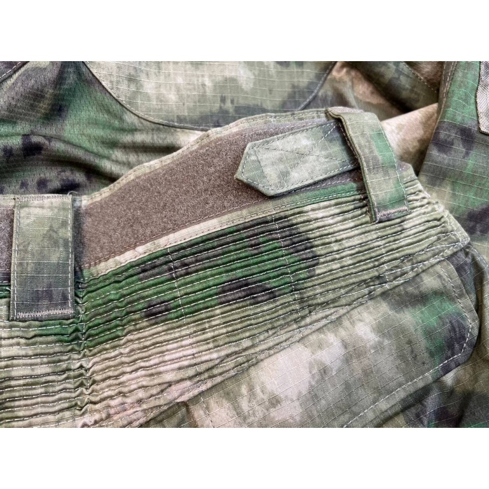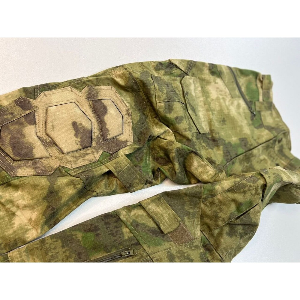 - Брюки: Брюки имеют боковые карманы на молнии и широкие ременные петли, позволяющие использовать тактические ремни различных размеров. Поясной элемент оборудован усиленной фиксирующей стропой на велкро. Нижняя часть штанины застегивается на молнию, а также имеет клапан. Карго-карманы на набедренных частях и тыльные карманы обеспечивают удобство носки и хранения мелочей.