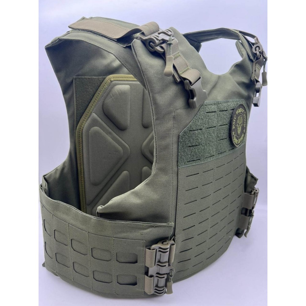 Бронежилет оснащен баллистическим пакетом, который включает переднюю, заднюю и боковые части. Он представляет собой сочетание 36 слоев баллистической ткани из сверхвысокомолекулярного полиэтилена высокой плотности, плюс 1 плита PE и 1 слой пенки толщиной 4,5 мм. Уровень защиты пакета составляет 4.4 с плотностью пуленепробиваемого слоя 145. Это обеспечивает высокую степень защиты от пуль и ударов.