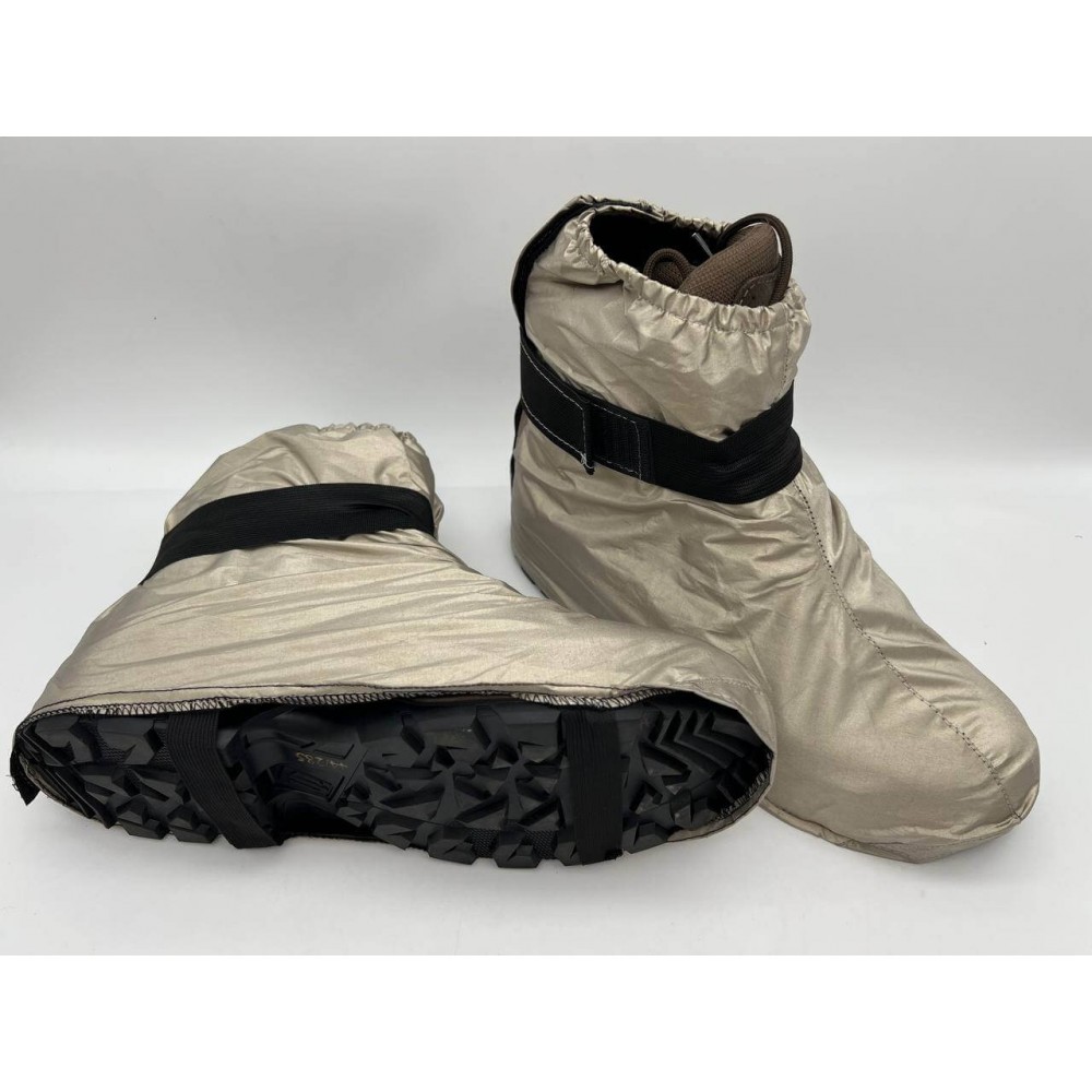- Надеть чехлы на обувь и зафиксировать ленту Велькро.